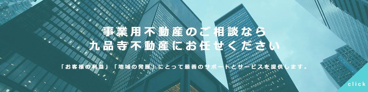 一覧はこちら物件売買物件情報土地 / 売地 熊本市西区二本木1丁目 価格 16,873万円 面積:371.86m2(112.48坪) 熊本駅近く!事業用地にも住宅用地にも最適な好立地です。 詳細を見るマンション / 投資用マンション 熊本市中央区本荘5丁目 価格 110,000万円シャーメゾン リバーサイド 入居率96%!中心市街地まで徒歩圏内、日当たり良好物件です。 詳細を見る土地 / 売地 熊本市中央区新屋敷2丁目 価格 12,000万円 面積:257.57m2(77.91坪) 事業用地、住宅用地、いずれにも最適な整形地です。 詳細を見るマンション / 売中古マンション 熊本県熊本市西区春日3丁目 価格 13,000万円 間取り:2LDK 全居室7帖以上、LDK30帖以上!眺望良しの角部屋です。 詳細を見る土地 / 売地 熊本市北区弓削五丁目 価格 94,000万円 面積:3,100.66m2(937.94坪) 東バイパス沿いの広大地!事業用地に最適です。 詳細を見る当社について 不動産は、企業の未来を左右する大切な資産です。九品寺不動産は、豊富な情報力と専門知識を活かし、事業用・投資用不動産の最適な活用をサポートします。お客さまのビジネスの発展に寄り添うパートナーとして、確かな価値をご提供します。会社概要はこちら マップ