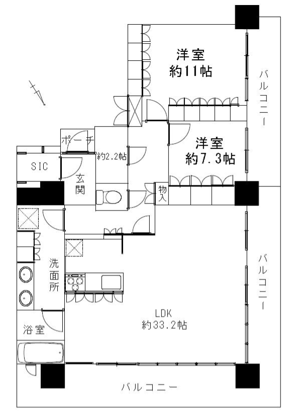 全居室7帖以上、LDK30帖以上!眺望良しの角部屋です。
